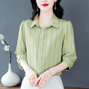 女性のためのファッショナブルな七分袖シフォンシャツ 2025 夏の新しいスタイルの多用途気質シャツ西洋スタイルの年齢を減らすママトップ