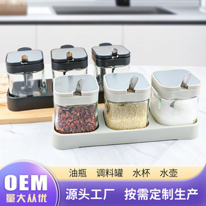 家用调料盒按压开盖调味罐厨房用品套装组合厨房调料瓶盐罐收纳盒