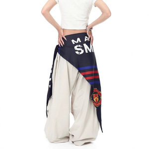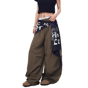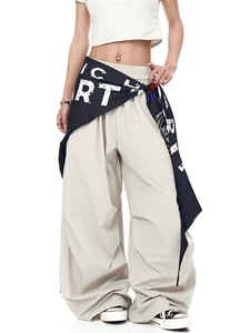 复古撞色屁帘工装伞兵裤女街舞褶皱设计感宽松阔腿跳舞爵士弯刀裤