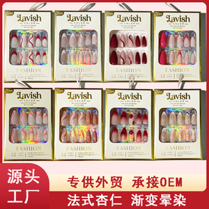クロスボーダー 12 ピースフレンチアーモンド新しいグラデーションブルーミングフラワーウェアラブルネイル偽爪ヨーロッパとアメリカのマニキュア卸売