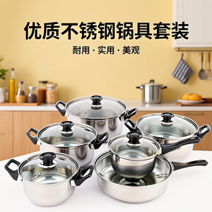 12件套,跨境厂家直发黑柄套装不锈钢锅具锅具奶锅汤锅不粘锅