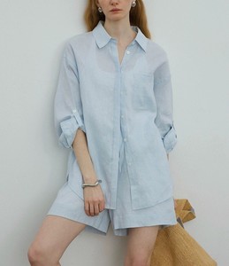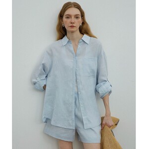 松弛夏日/慵懒随性老钱风纯色白色亚麻廓形衬衫/短裤套装