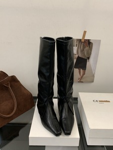 2025新款时尚方头软面双穿皮高筒不过膝瘦瘦骑士女长靴皮质设计感
