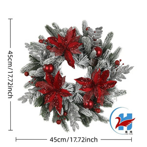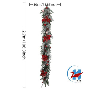 国境を越えた売れ筋クリスマスガーランドベルベットレッドフラワー模造クリスマスデコレーションセットホリデーガーランド逆さまホームデコレーション