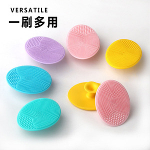 儿童洗头刷洗脸刷圆形双面清洁按摩软毛洁面多色吸盘批发吸盘式