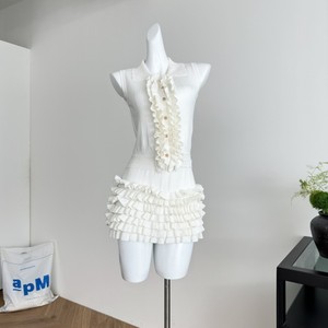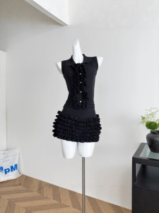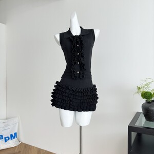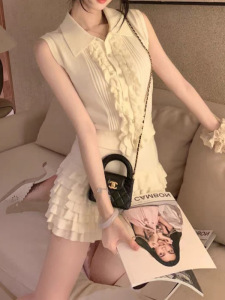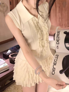 2025年夏新款娇嫩俏皮感针织木耳边气质蛋糕半裙套装