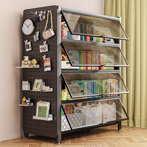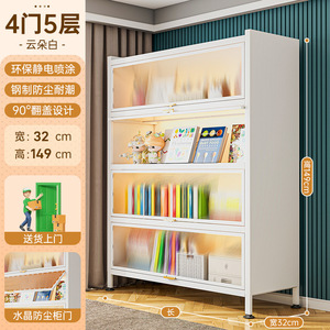 家用书柜多层钢制带门儿童书架防尘储物柜落地置物架展示柜收纳柜