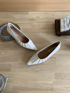 法式尖头内增高单鞋女鞋子2025春夏新款褶皱浅口原创晚晚鞋通勤鞋