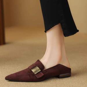 法式单鞋女2025春秋新款复古尖头平底磨砂深口乐福小皮鞋瓢鞋女潮