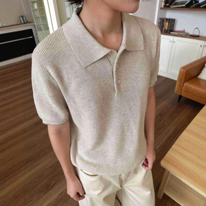 新贵高奢2025夏季棉麻花纱polo短袖针织衫男女复古老钱松弛感上衣