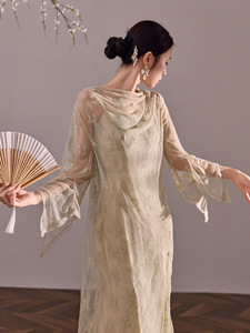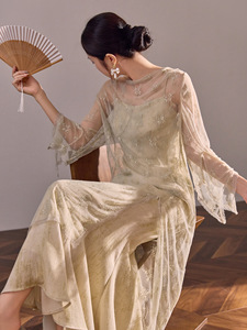 夏季新款异域风情优雅连帽蕾丝罩衫气质长款连衣裙两件套女 N5037