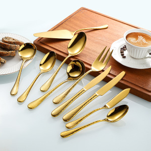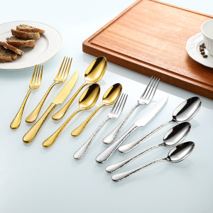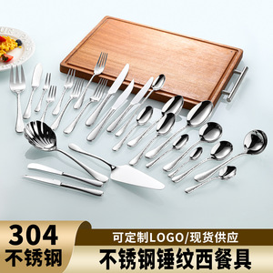 高級ホテル・レストラン向け304ステンレス製、槌目柄の高級食器(ナイフ、フォーク、スプーン、ティースプーン、ティーフォーク)