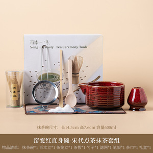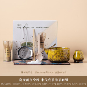 跨境日式陶瓷抹茶碗抹茶套装百本立茶筅立釉窑变宋蕴抹茶套装