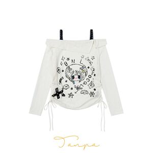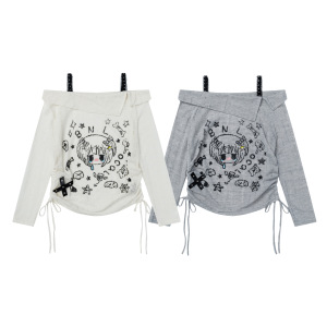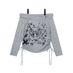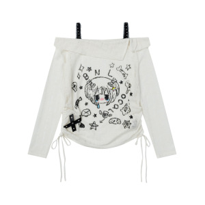 Mint Miaow 25秋季新品美式可爱趣味印花露肩长袖T恤