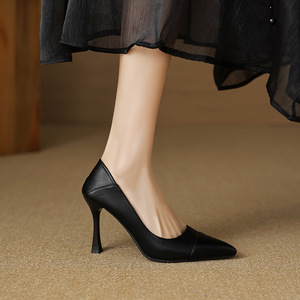 四季尖头细跟高跟单鞋女士浅口职业工作鞋两穿百搭