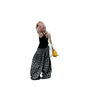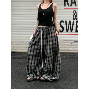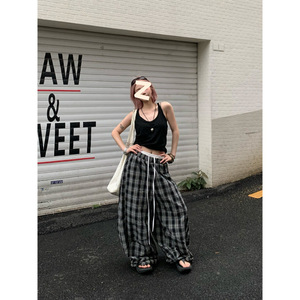 逃离光复南 美式慵懒风格子裤男女爵士舞双腰头拼接宽松阔腿裤潮