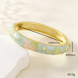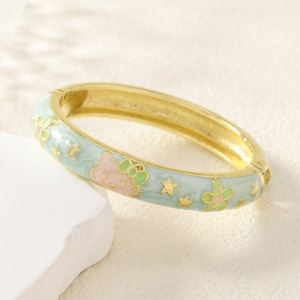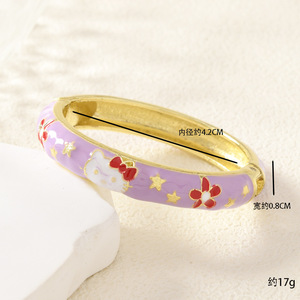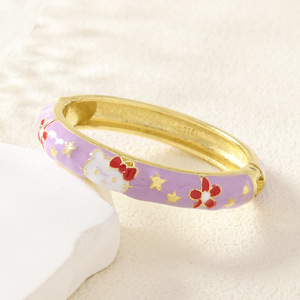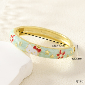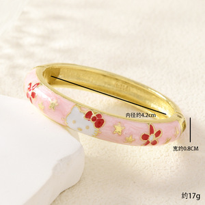 新しいキティブレスレット、かわいいレトロなエナメルカラーのオープン子供用ブレスレット、女の子向けの中国のトレンドの紫禁城の同じスタイルのジュエリー