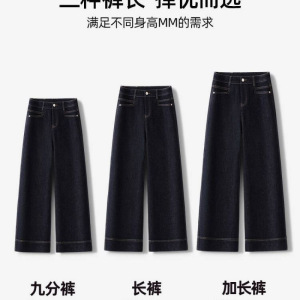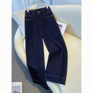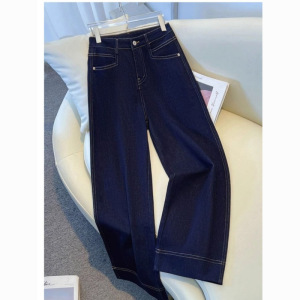 深蓝色丹宁阔腿软牛仔裤2025高腰显瘦新款宽松直筒阔腿慵懒拖地裤