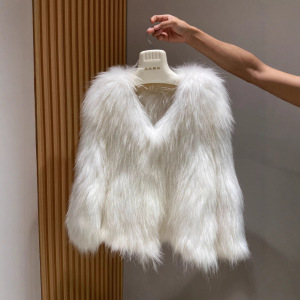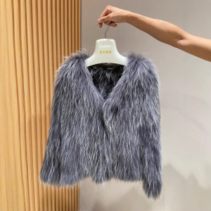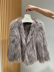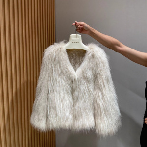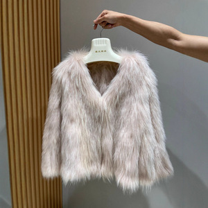 暗号化されたタヌキ毛皮の両面織り毛皮コートレディースショートVネック2025冬新スタイル小柄なネット有名人と同じスタイル