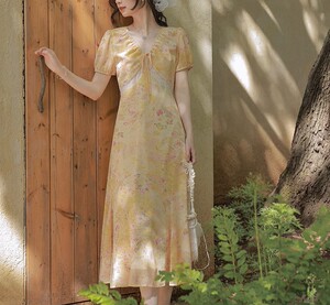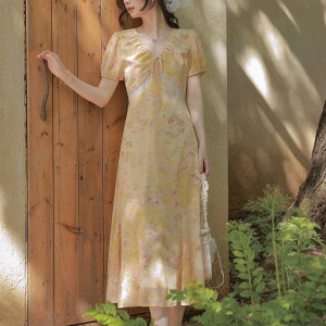 花栗鼠小姐 夏花 法式优雅气质繁花长裙女夏季显瘦氛围感连衣裙