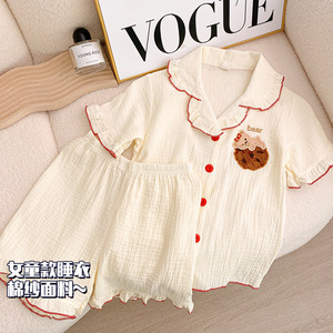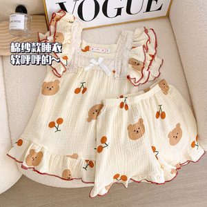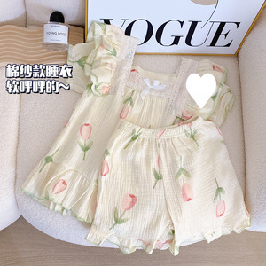 女の子パジャマ夏 2025 新しい綿ガーゼ半袖スーツ子供女の子ファッショナブルなプリンセススタイルホーム服