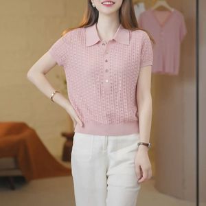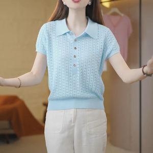 POLO针织衫百搭2025夏季新款纯色气质显短袖T恤上衣薄款中老年
