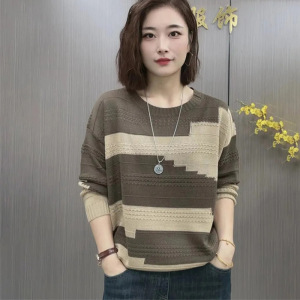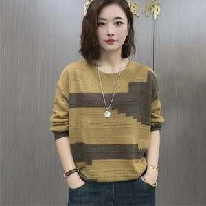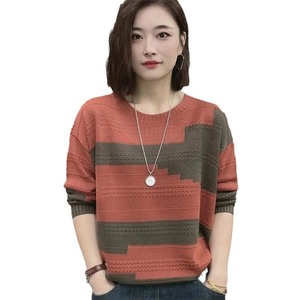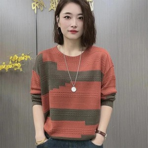 万能ラウンドネックカラーブロック薄手セーターボトムシャツ春秋新作ゆったりお腹カバーファッショナブルなセータートップスアウター