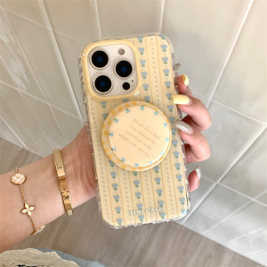 奶黄底蓝色小花磁吸支架苹果16promax适用15pro双层磁吸壳14Pro13