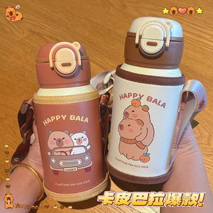 新しい Kapibara 子供用魔法瓶カップ 316 ステンレス鋼学生ポータブル屋外ワンカップダブルストローウォーターカップ
