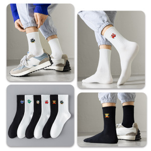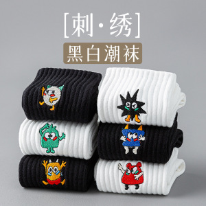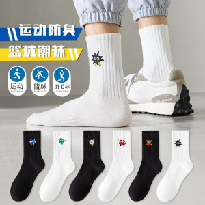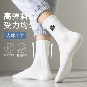 中筒长袜子男款春秋长筒纯棉防臭篮球袜青少年白色全棉吸汗运动袜