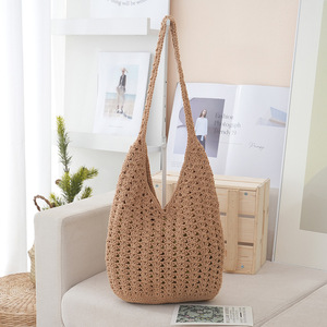 跨境休闲大容量单肩2025新款包包女海边沙滩度假编织包简约腋下包
