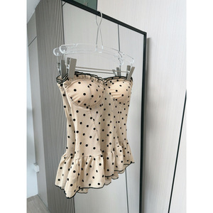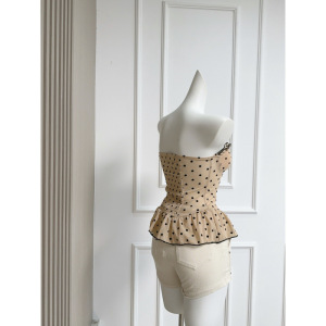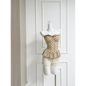 鱼骨收腰显瘦显白波点网纱植绒排扣抹胸上衣