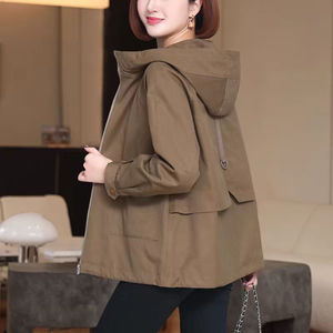 妈妈装上衣秋短款大码女装风衣中年宽松胖夹克显瘦外套春秋休闲