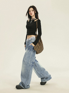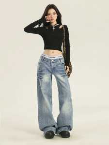 美式复古重工水洗低腰牛仔裤女2025年秋季新款宽松直筒辣妹阔腿子