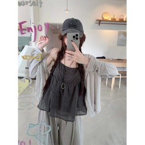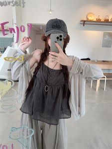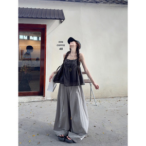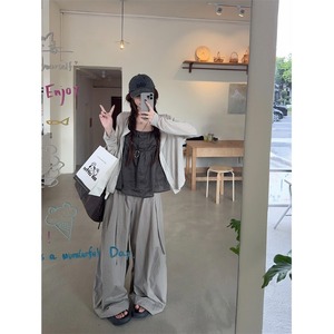 韩系休闲套装女夏季2025新款薄款开衫减龄吊带背心高腰阔腿拖地裤