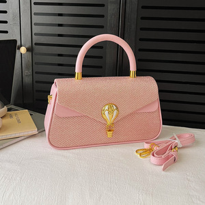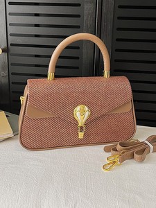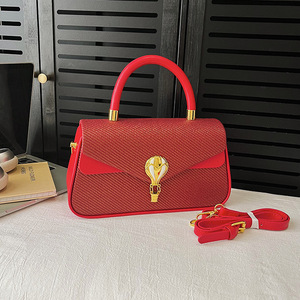 跨境新款2025春季压痕荔枝纹锁扣简约休闲斜挎单肩手提小方包包女