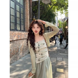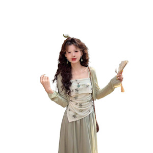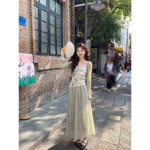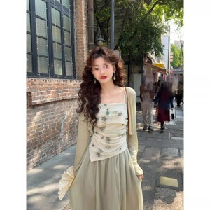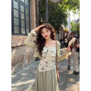 中式国风套装印花吊带开衫春季套装新款夏季气质时尚半身裙三件套