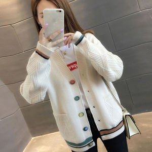 春と秋の新 V ネックカラーブロックセーター女性のコート韓国スタイルルーズ多用途ファッション西洋スタイルニットカーディガン女性