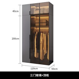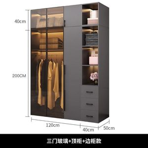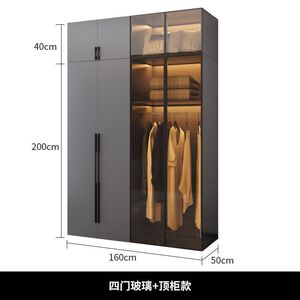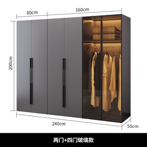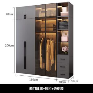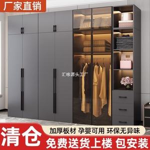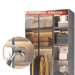 衣柜家用卧室实木现代简约简易玻璃门柜子免安装组合大衣橱