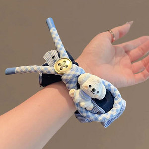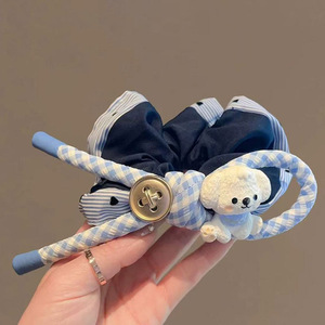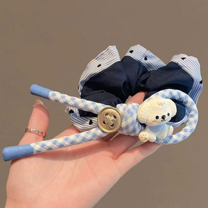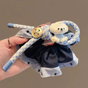 かわいい子犬ブルーチェック柄リボンヘアバンドネイビーブルーファブリックヘアバンド新しい小さな新鮮なヘアバンド多用途ヘッドバンド