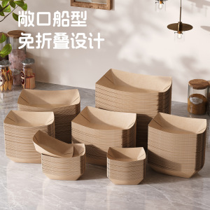 一次性牛皮纸船盒炸鸡油炸专用食品防油小吃餐盘纸船型薯条打包盒