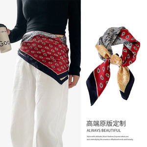 简约风黑色腰果花系腰丝巾腰带女小众高级感裙子装饰屁帘腰封配饰