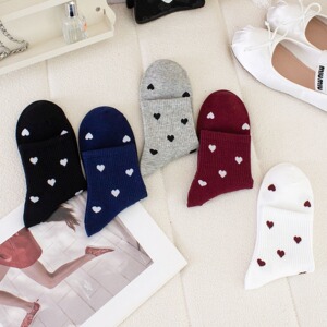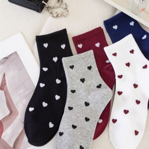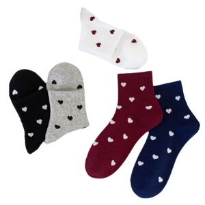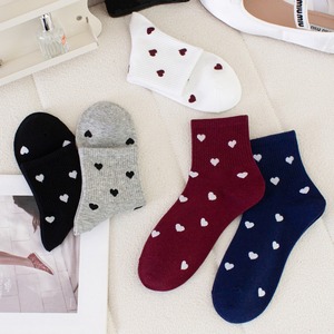靴下 夏用 薄手 レディース アンゴラ レッド ハート柄 ミドル丈ソックス シンプル 高伸縮 吸汗 通気性 スポーツ カジュアル 綿靴下
