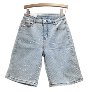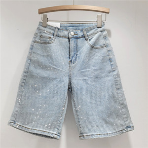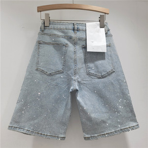 设计感满天星烫钻弹力牛仔中裤女小众宽松重工五分裤2025新款