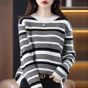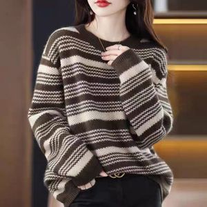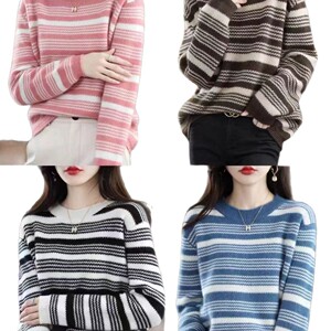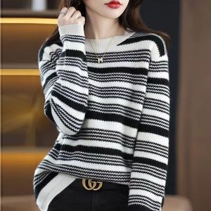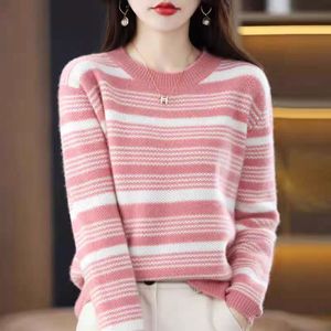 2025秋冬新款针织条纹圆领打底衫女休闲上衣内搭外穿洋气套头毛衣