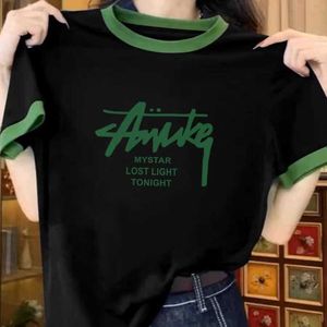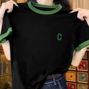 2025新款纯棉短袖t恤女正肩圆领拼色韩版洋气设计感半袖上衣夏季