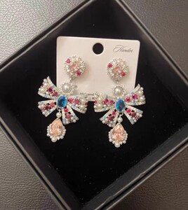 ヘビーデューティーマイクロセットジルコンリボンイヤリング、パーソナライズされたライトラグジュアリーニッチスタイルイヤリング、ファッショナブルでハイエンドの多用途イヤリング