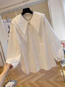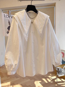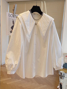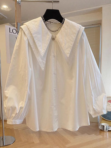 法式气质双层娃娃领长袖衬衫女设计感小众上衣春秋打底上衣外穿