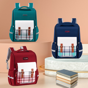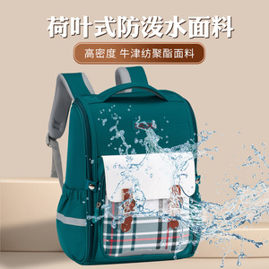 英伦风一体式小学生书包男女格纹大容量防泼水减负护脊儿童双肩包