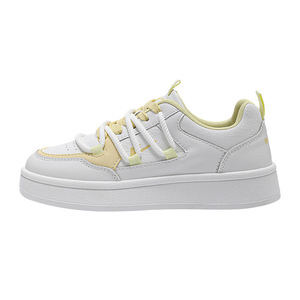 通気性のあるダブルストラップ厚底カラーブロックレモンイエローカジュアルシューズ、高見えするローカットレディーススニーカー卸売